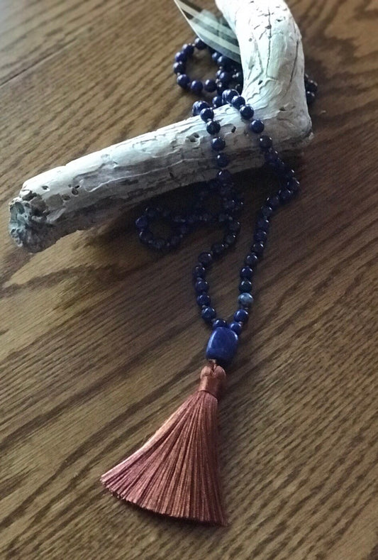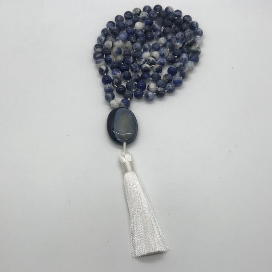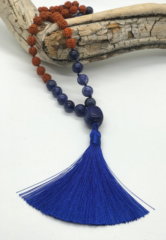 Sodalite Mala Prayer Beads | Insight & Intuition | Beaded Tassel Necklace