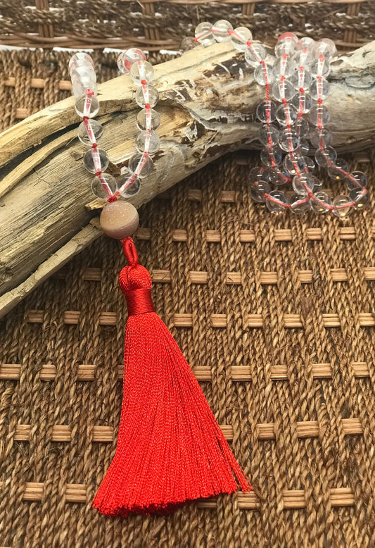 Quartz Crystal Mala Prayer Beads | Enhances Memory and Healing | Increases Energy