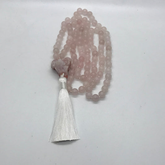 Rose Quartz Mala| Encourages love & Gentleness | Beaded Tassel Necklace